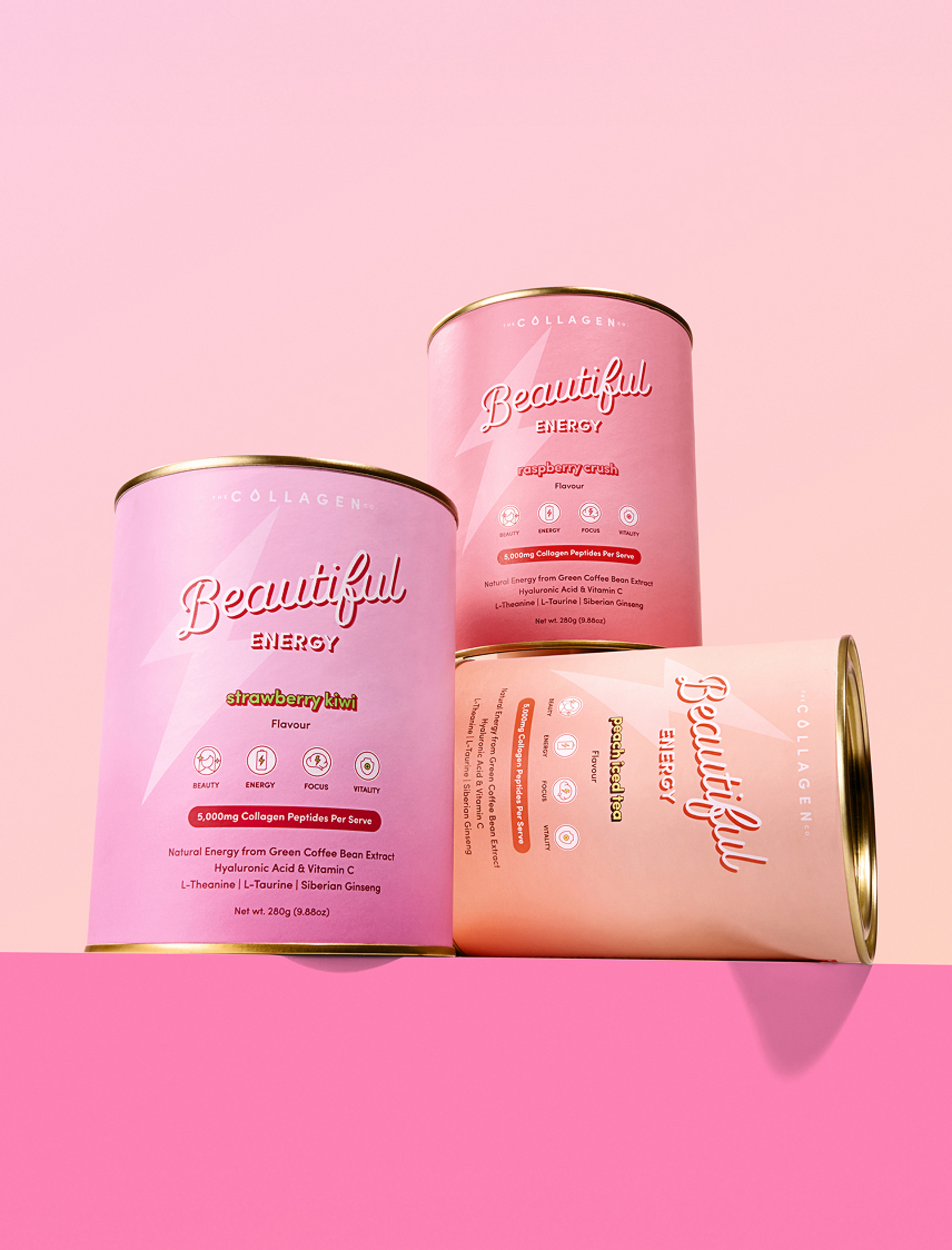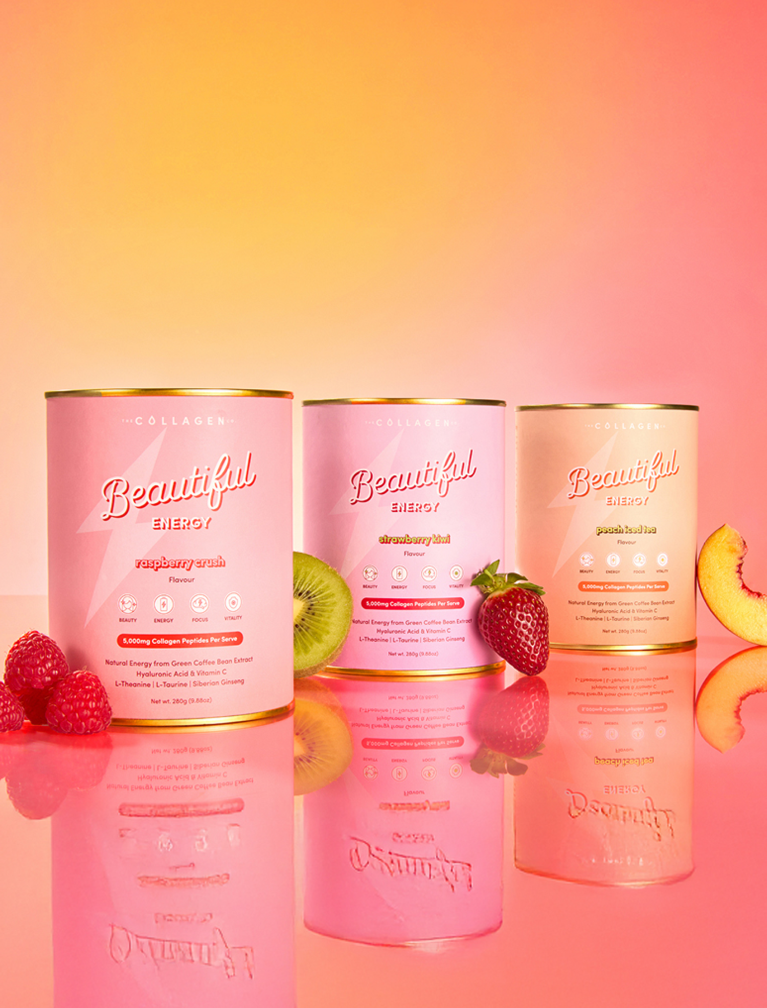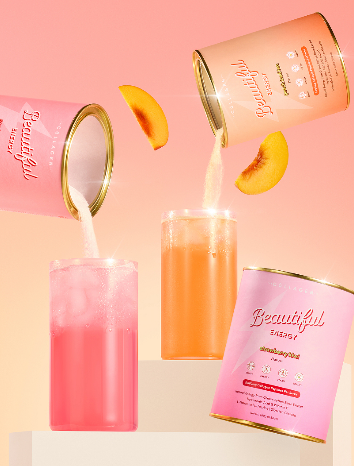 Beautiful Energy is a glow-first energy drink formulated to support focus, skin health, and gut comfort, without the crash, jitters, or artificial junk found in typical energy drinks. It’s powered by clean, natural ingredients like green coffee bean caffeine, hydrolysed collagen peptides, adaptogens, and vitamins to help you feel good and look great.
