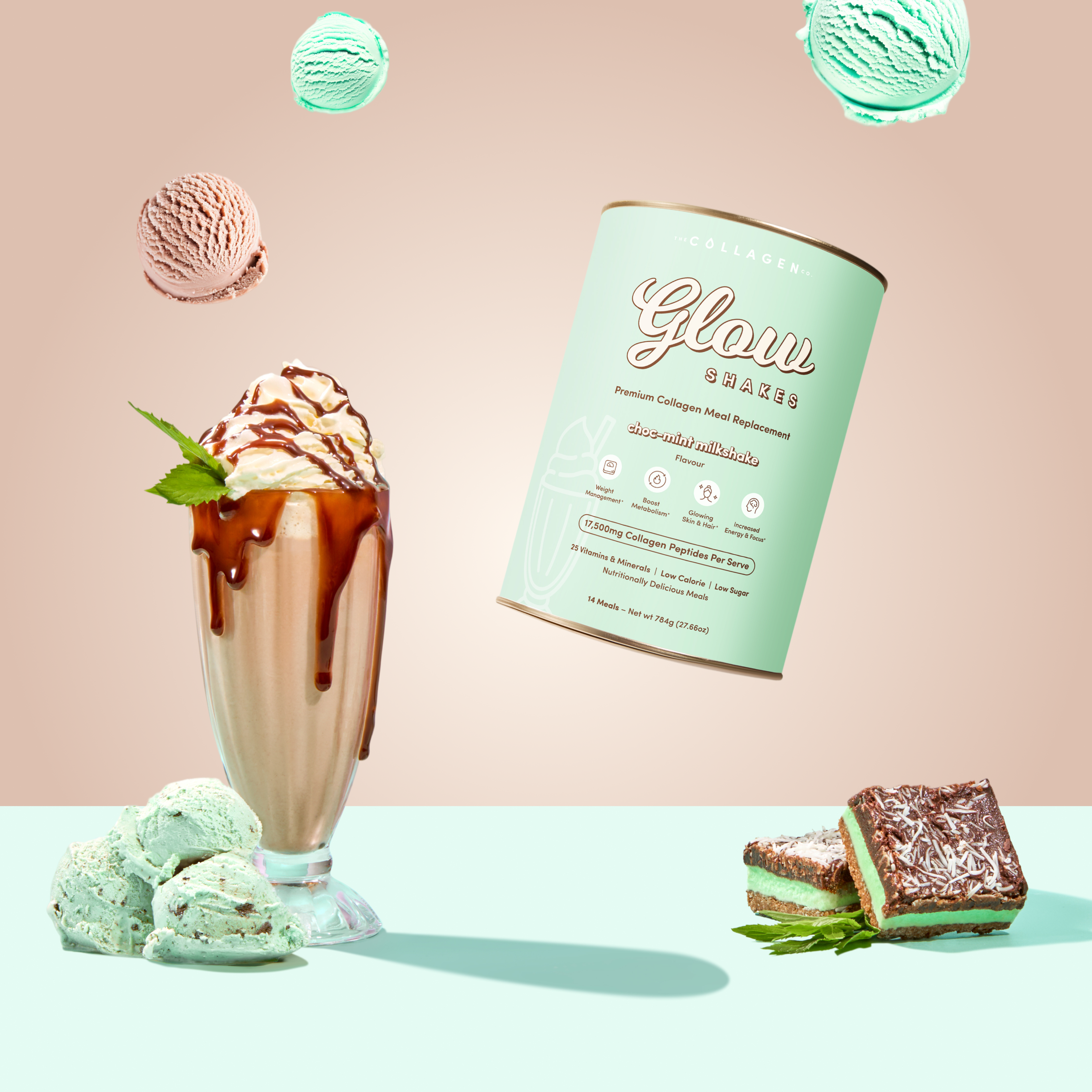 A delicious fusion of rich chocolate and cool mint, packed with protein and glow-boosting collagen. Indulgent, refreshing, and totally guilt-free.
